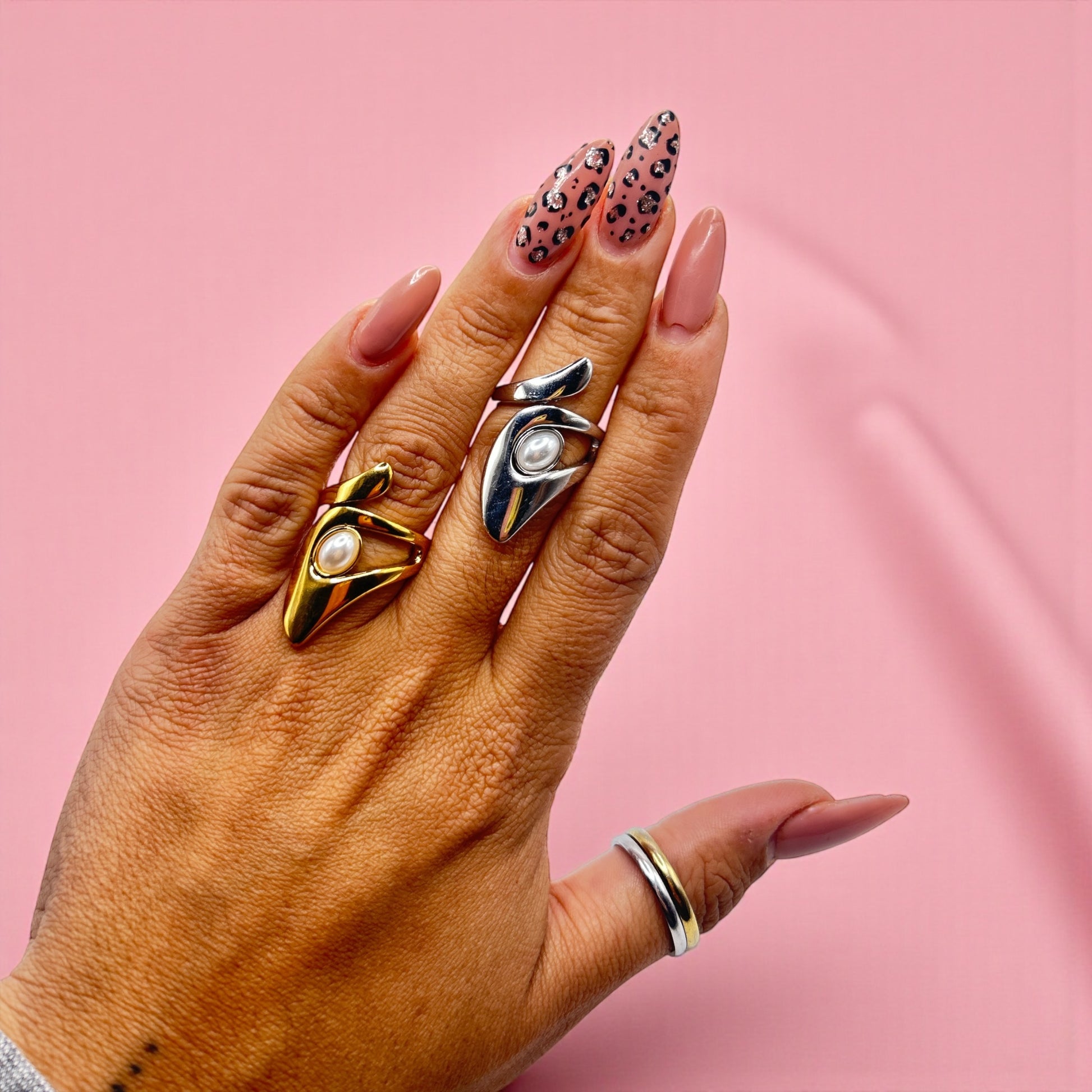 La sua forma geometrica e decisa, impreziosita da una perla centrale, richiama l’eleganza mistica dei gioielli egizi e delle loro dee.